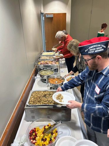 VFW POST 6024 members, Auxiliary and family enjoy this annual Christmas Dinner and celebration during the December Post Open Meeting.